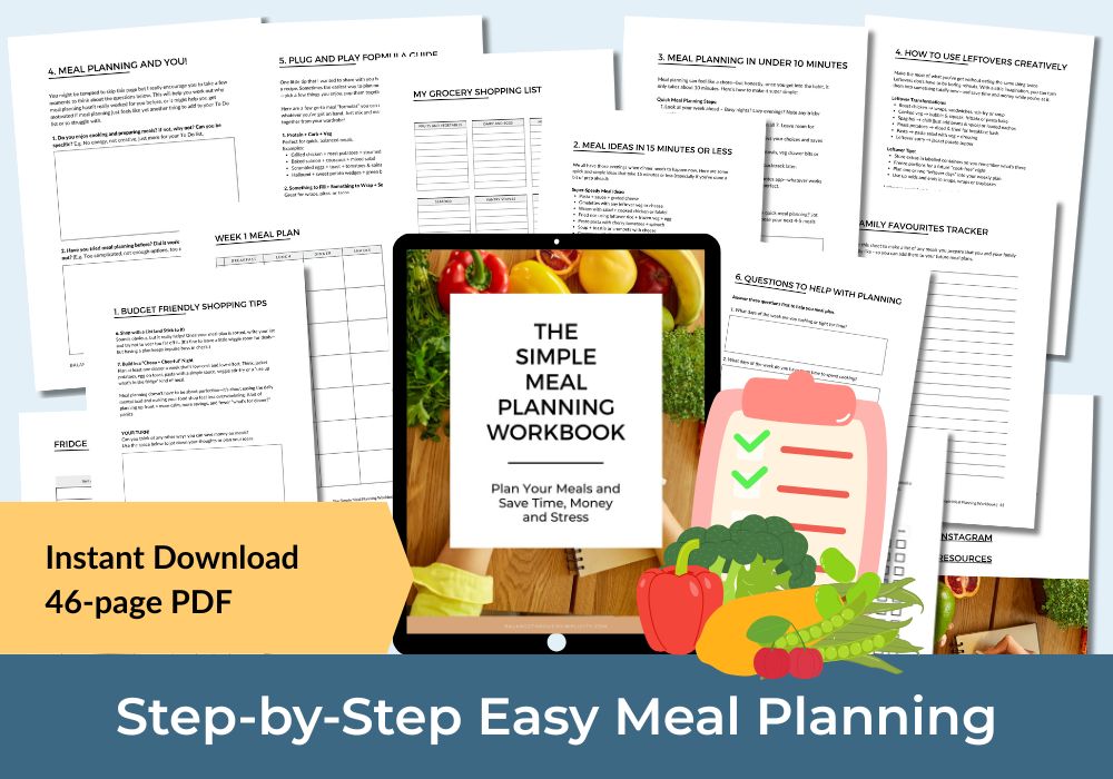 My Simple Meal Planning Workbook is just the thing to help you plan your meals, save time and energy in the kitchen, stop wasting money and reduce some of those decisions you need to make every day.